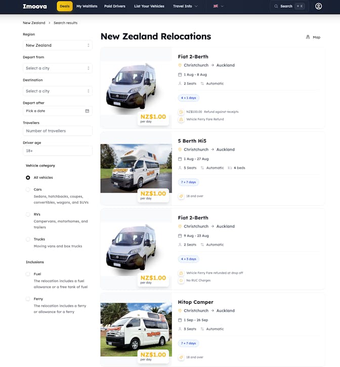 PS: New listings are added everyday so keep an eye on Imoova's website regularly.