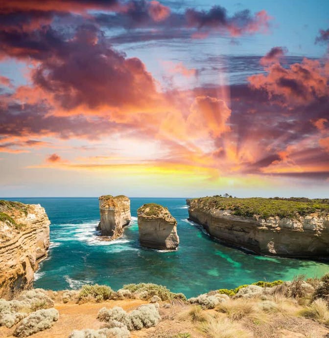 Why it’s Insta-famous: Rugged limestone stacks rising dramatically from the Southern Ocean — one of Australia’s most iconic coastal views.